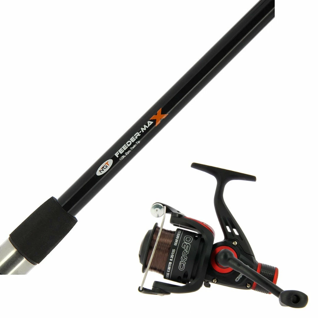 A quality starter feeder combo comprising of Angling Pursuits 10ft feedermax rod and NGT CKR30 reel loaded with Mono line.