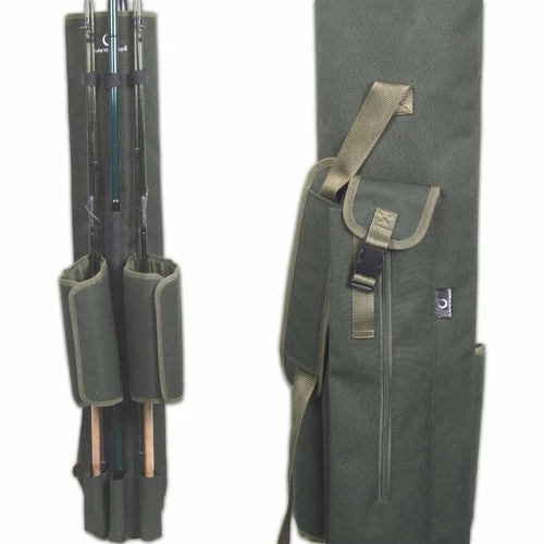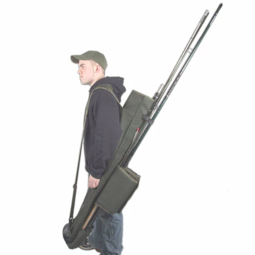 - Rods are carried on the outside with the bottoms being supported in pouches and the tops retained by velcro straps.