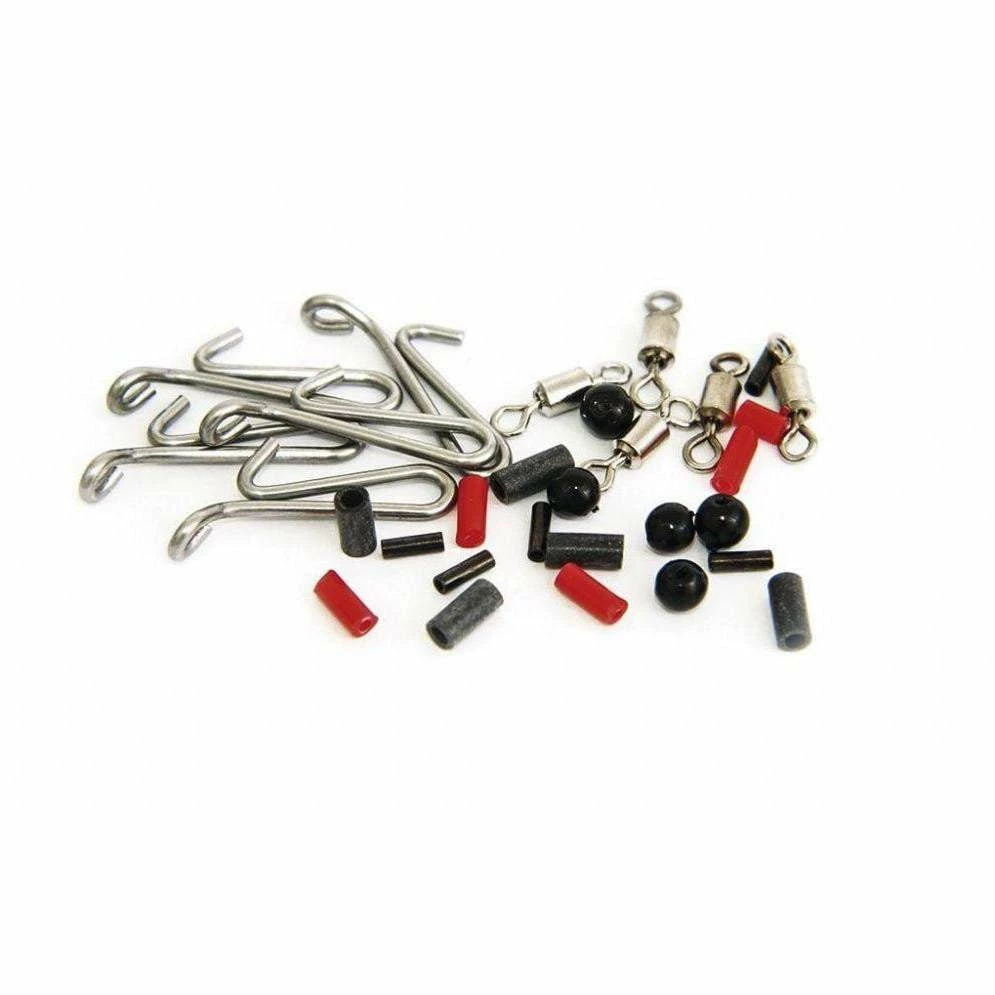 Genie Pulley Clips are ideal for rigs that require a clip down snood that is longer than the main body. Placed high on the rig, the snood feeds up and over the pulley clip and down again to the bait. Designed to ensure the line is released every time! This pulley clip is based on the Genie Bent Rig Clip, this pulley clip is particularly suitable for ‘straight through’ rigs where the clip takes the strain of a powerful cast. Each pack contains 5 pulley clip set-ups (Swivels, Spacers, Bent Rig Clips, Beads and Neoprene Stop Knots)