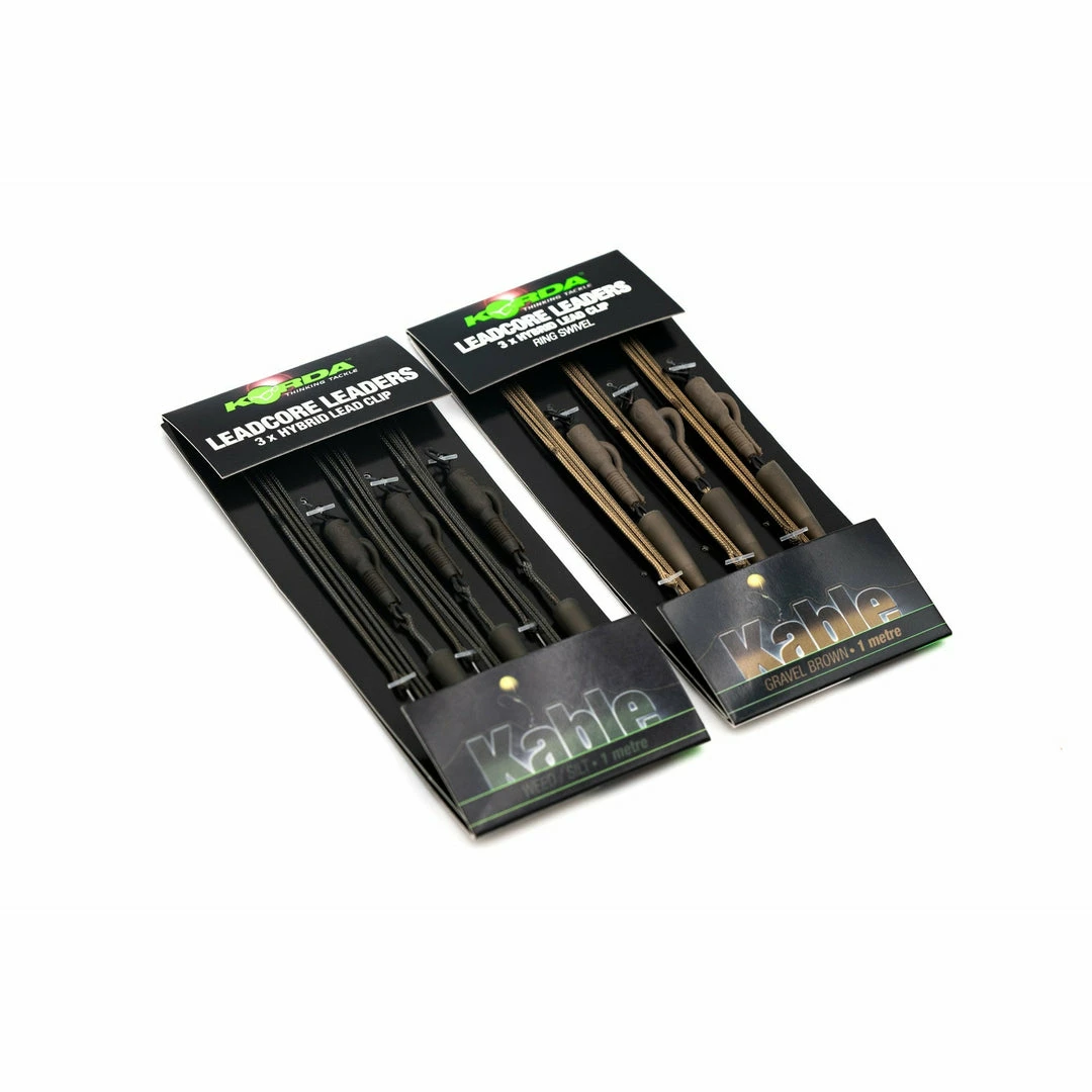 These ready-tied Kable leadcore leaders are as good as anything that you can construct yourself, and save you the time, effort, and any element of doubt that you’ve done it correctly. Each 1m long leader is constructed from our incredibly tough and fast-sinking Kable leadcore, with a Hybrid Lead Clip spliced to one end of it and a spliced loop at the other end so that it can quickly be attached and detached from your main line as required. Simply attach the leader to your main line, your hook link to the other end, put a lead on, and you’re ready to cast out! Each pack contains three Kable Hybrid Lead Clip Leaders, in a choice of Weed/Silt or Gravel Brown colours. A Heavier Euro version is also available.