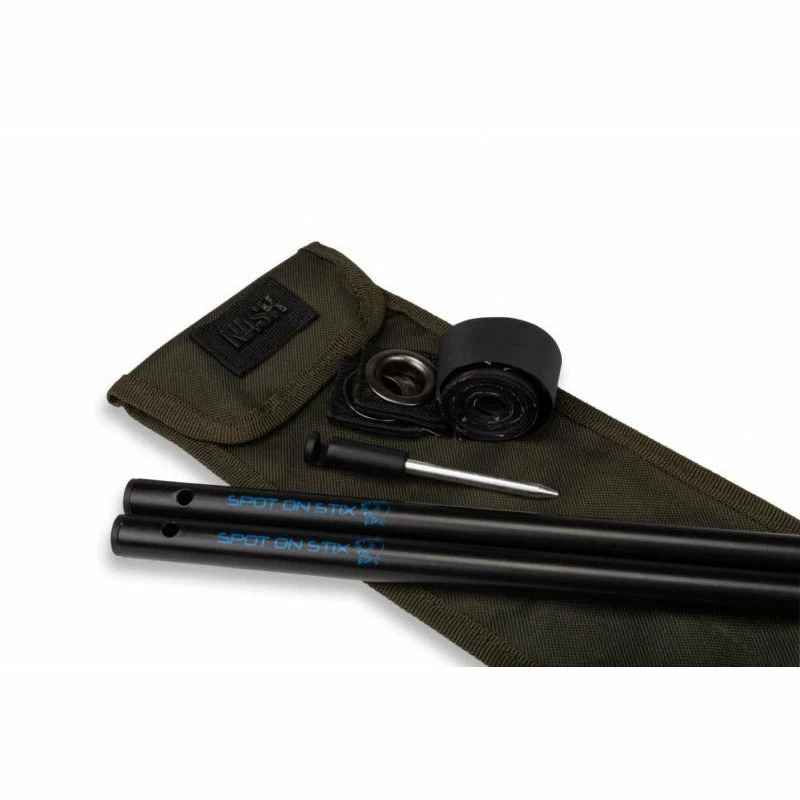 Spot On Stix keep your rig landing over baited areas or on feeding hotspots every time. Two tough marker Stix push into the ground, spaced exactly 12 feet (approximately four yards) apart through eyelets in the measuring tape.