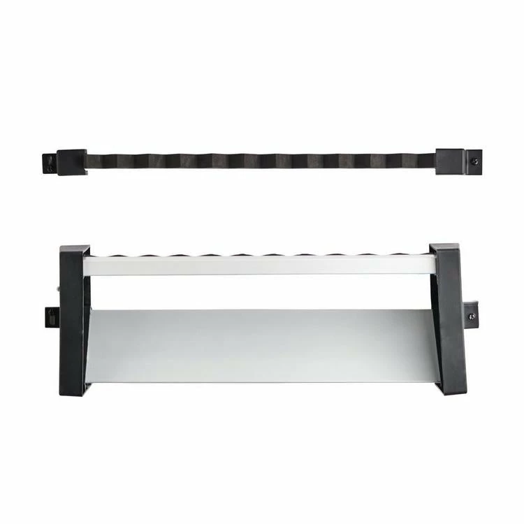 Use enclosed screws to attach to wood, metal, fiberglass or plastic. Use suitable wall anchor when applying to sheetrock or wallboard. Spacing between mounts vary depending on gear stored – recommended spacing between mounts is approximately 42″.