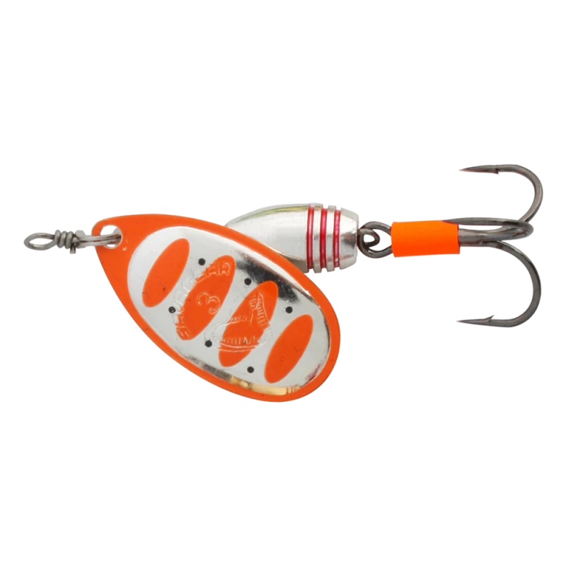 The Series of Savage Gear spinners is truly unique in quality and design. We bring new innovation to a very traditional lure type in a remarkable way, with unparalleled quality components and colours. The Rotex Spinner has been perfected in shape after thousands of hours of testing. Its rotation is perfect in both rivers and streams as well as still water – even at slow speeds and immediately when the spinner hits the water. Each spinner is tank tested and hand painted. Each lure is an individual piece of Jewellery equipped with Customized Japanese Treble hooks.