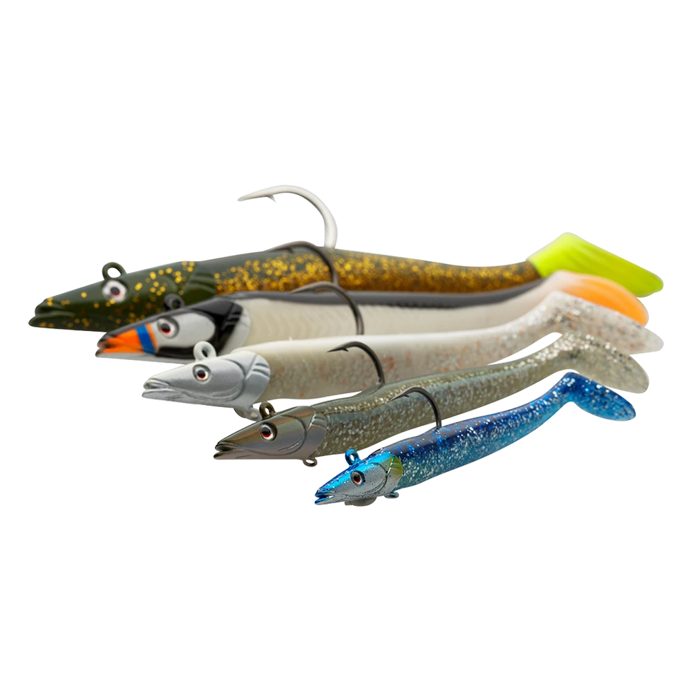 This stunning and unique lure is a supernatural sandeel imitation. The Sandeel is the favourite snack of many predators. These soft-bodied lures have the most fantastic swimming action. The sandeel is Savage Gear’s first 100% saltwater specific lure, designed mainly for vertical fishing – but have also proved to be deadly as swimbaits and even for trolling. The swimming action is so real; you have to see it, to believe it! Top quality Japanese carbon steel saltwater grade hooks, to withstand brutal attacks and land big predators. Excellent Cod, Sea Bass, Coalfish or even smaller Halibut.