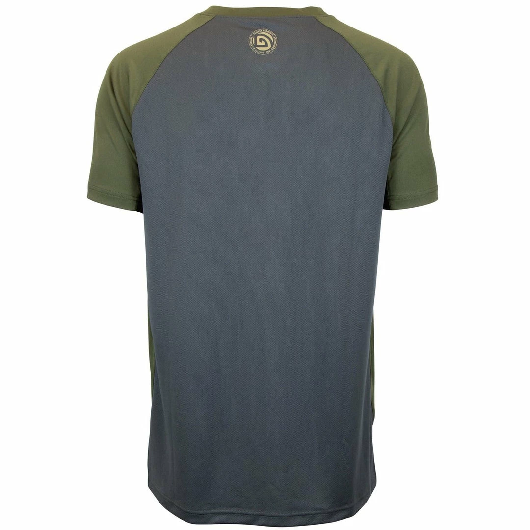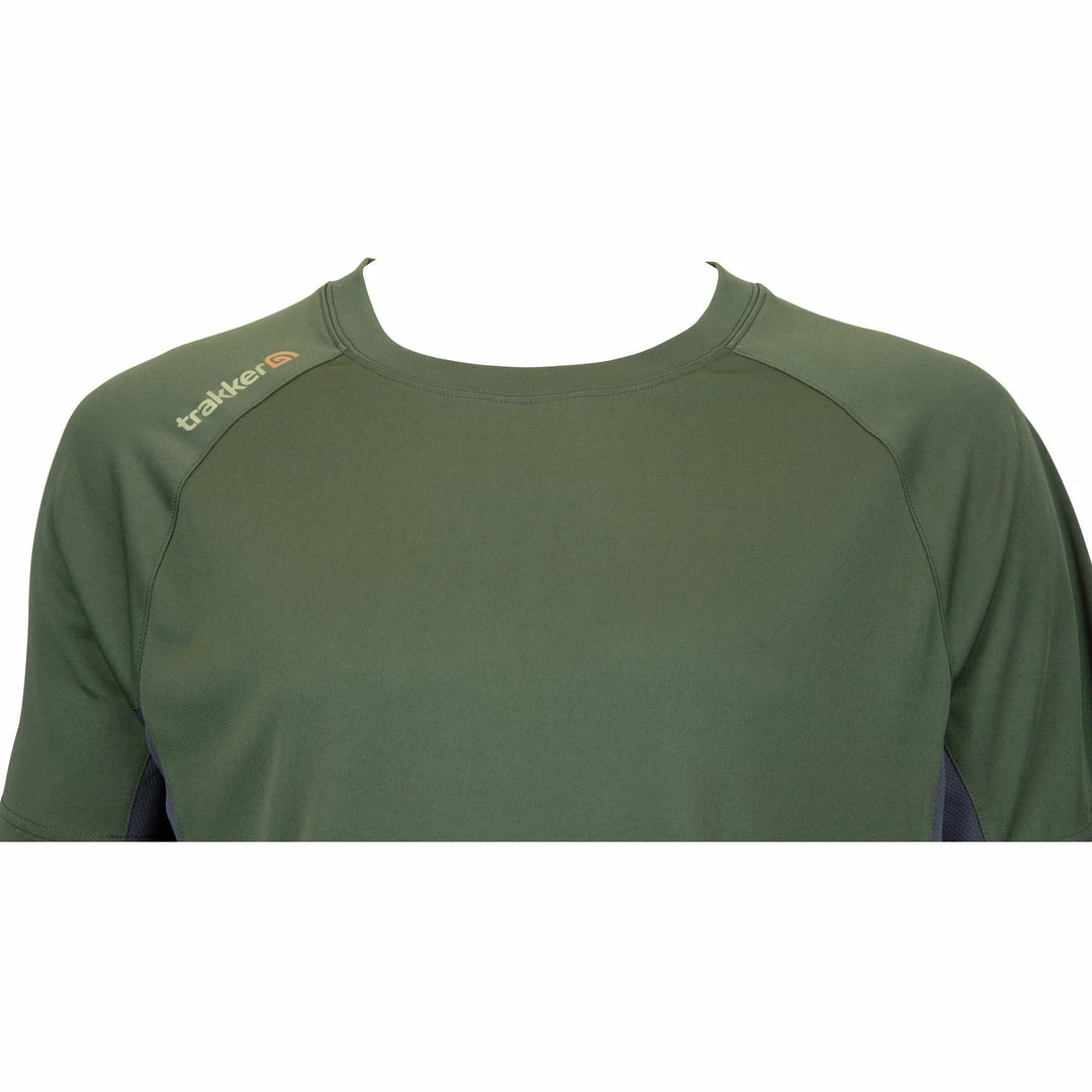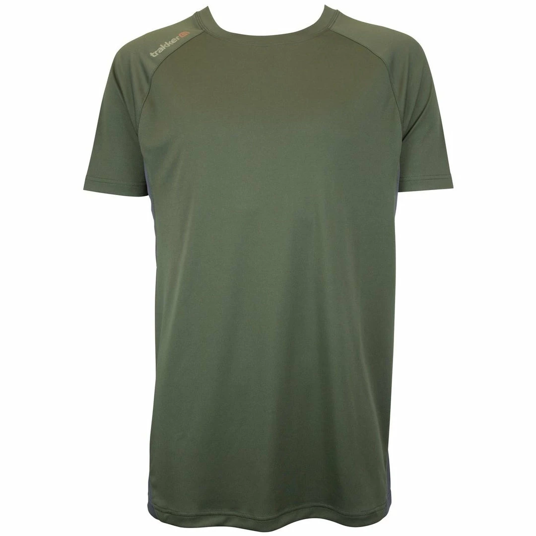 As part of our new technical clothing offer launching this Spring & Summer, we looked at the clothing requirements of the modern carp angler. Utilizing modern material technologies to bring a range of premium technical Trakker clothing into the angling world.This is the perfect choice during bothwinter and summer months, as not only is it very comfortable to wear,its super-quick drying and ultra-breathable. This sports style T-shirt is finished in tonal panels of khaki and grey, the grey panels have added airflow eyelet knit fabric exactly where you need it centre back and under the arms. For maximum performance, the top has been designed to be worn next to the skin it is well fitted to retain all freedom of movement when casting. As partof our easy-care, pack and wear offer this is a must have item for any keen carp angler.Subtle Trakker contrast logo branding front and back, this item is available in both Short sleeve and long-sleeve variants.Â