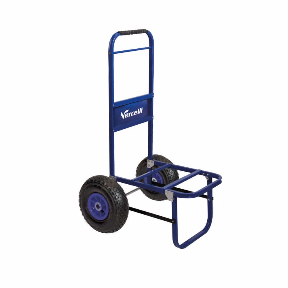 Lightweight aluminium trolley. Its square- shaped tube structure gives its the strength to withstand heavy loads. Rubber wheels 250ร80 mm.