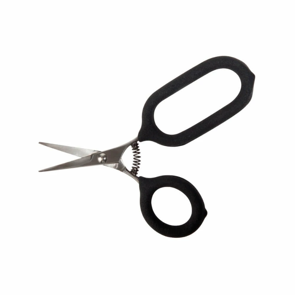 Scissors made from stainless steel. Micro-serrated blades for cutting very fine material. The blades are detachable, making them easy to sharpen, with a screw for re-adjustment. Over-sized grip on one side for greater control in difficult cutting situations. Measurements: Blade: 40 mm Total: 135 mm.